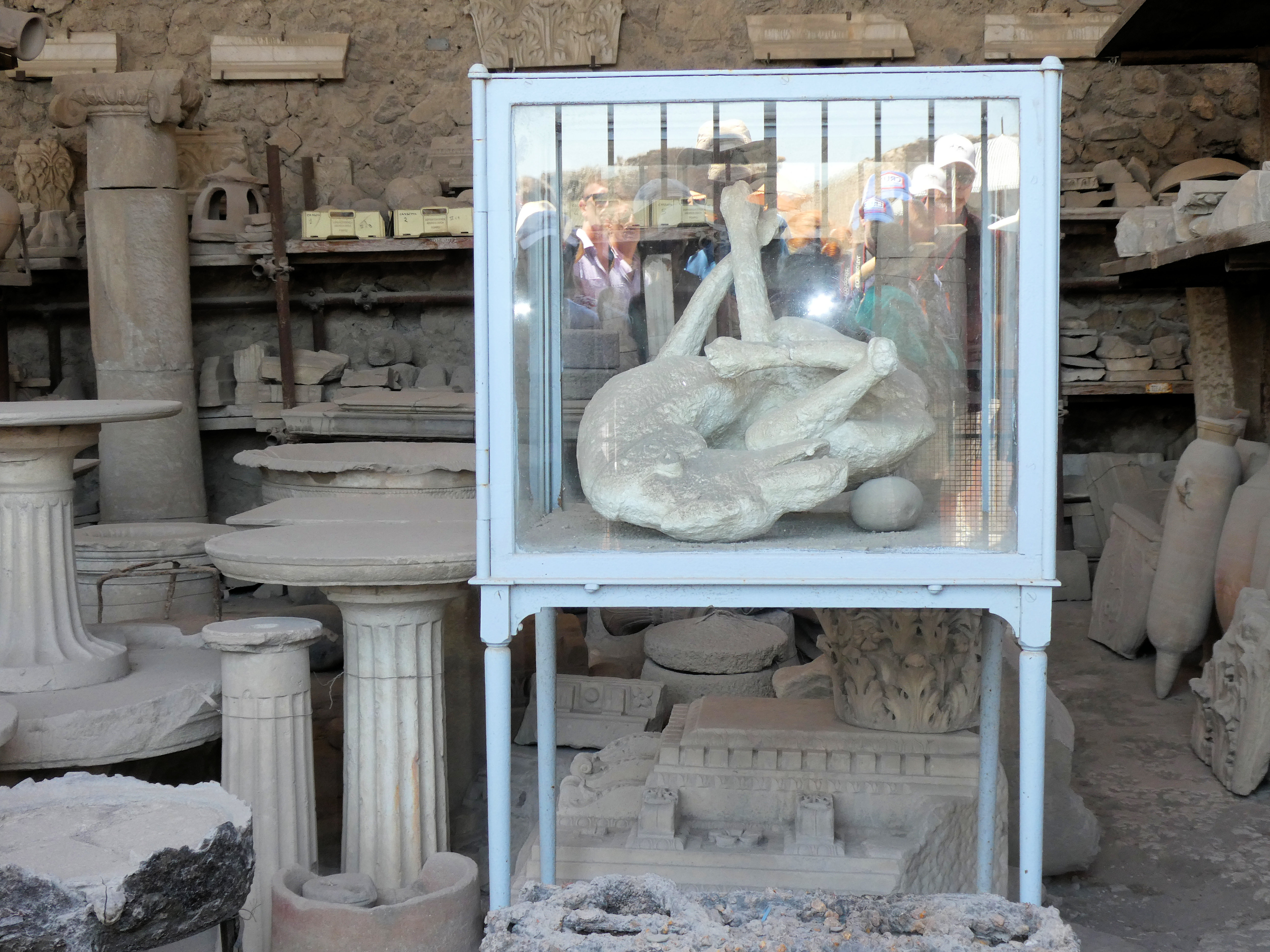 There had been severe earthquakes in the area for two days previous to the volcano’s eruption so many people had left the town for safety, otherwise the number of lives lost would have been a lot more. Nevertheless, 2,000 men, women and children perished. Plaster casts of some of the bodies that were excavated are on display but some are still under renovation.