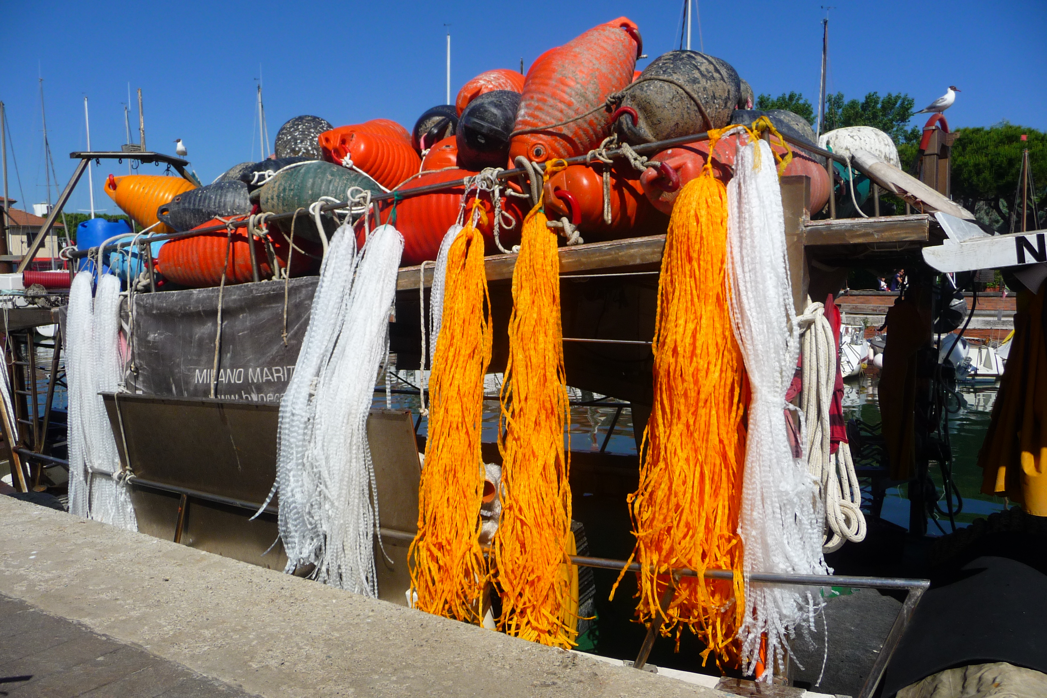 This is as medieval as it gets and it rings with names from history. The ancient fishing harbour was designed in 1502 by da Vinci on the orders of Cesare Borgia, two names to set the mind racing. One part of the canal has been closed off to accommodate the Floating Museum of Marine History in which eight perfectly restored boats of the type that were once used locally for trade in the upper and middle Adriatic are on display. Painted in the natural colours that were used in the past, each sail represents a different fishing family from the area. This was done originally so that the boats could be recognised at a distance: today they are a lesson in maritime history.
