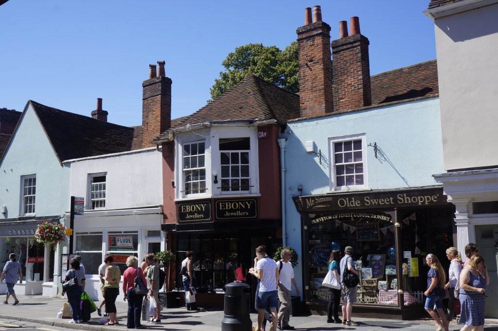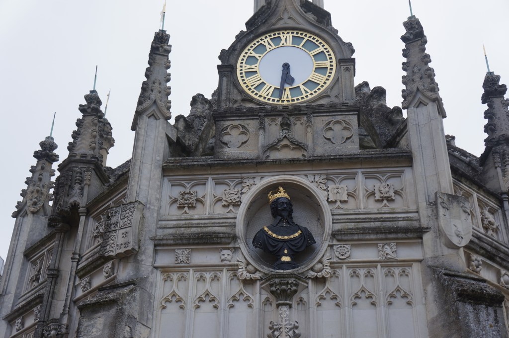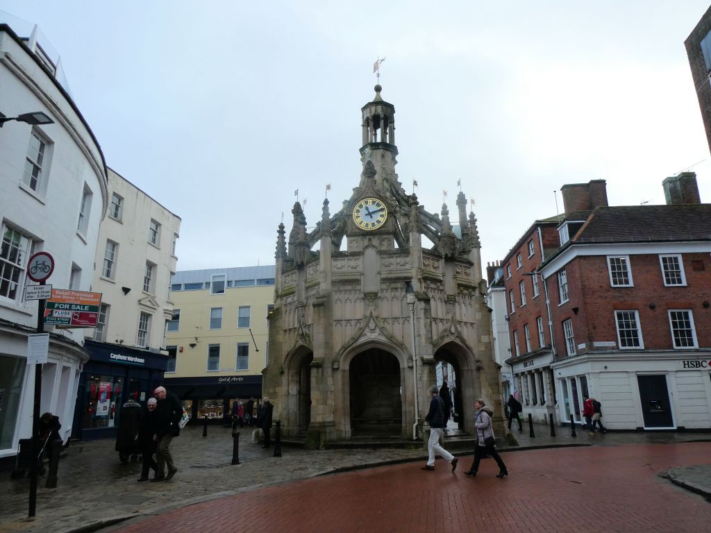 The city’s Roman influence is reflected in the main street pattern, and it is not difficult to spot historic buildings that line the streets and the little alleys that lead off them. One of the city’s most iconic features is The Market Cross, believed to have been built in 1501 by Bishop Edward Story, who paid £10 to the Mayor of Chichester for the ground on which it is built. The Bishop allowed peasants to trade under the Market Cross without paying a toll, and it’s still a gathering point for the community today and for sellers of fruits in summer and umbrellas and plastic ponchos last week!