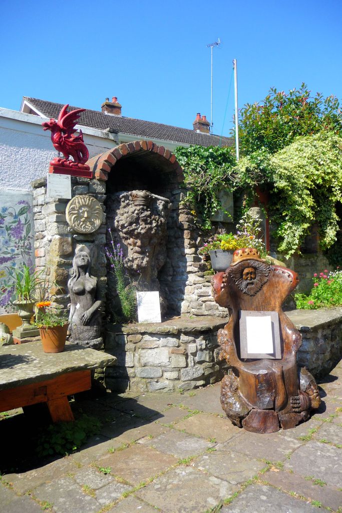 But Caerleon has more to offer than ancient history. Just off the High Street you can walk through a reconstructed arch of the main Roman gates, across cobblestones and into an eighteenth century walled garden peopled with sculptures of King Arthur, Merlin, Mordred and Morgana, and, at 44 feet long – the world’s largest love spoon. Alongside these carvings of mythical figures are carvings of characters from classic Welsh folktales from The Mabinogion, a collection of sculptures that has no equal anywhere in Wales.