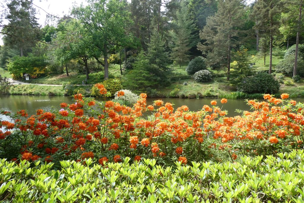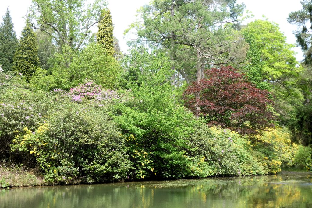 Jewel-coloured rhododendrons light up the woodland against a backdrop of red and green acers whose leaves re just beginning to take on their summer colouring. Many more are reflected in the waters of the 7 lakes that dot the woodland, doubling the colour and the display. I hadn’t realized how highly perfumed rhododendrons were, until my walk through the landscape of Leonardslee. One path that was lined with blowsy, yellow rhodos was a sheer delight and the scent almost overwhelmed.
