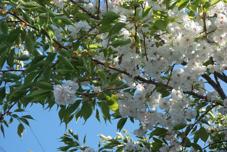 The blue sky through my cherry blossom is enough to put an idiotic smile on my face and make me feel really good. How beautiful is that sky and how perfect the flowers.