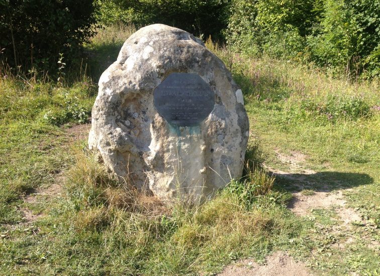 The Sarsen stone and the octagonal bronze plaque designed by Professor Sir Patrick Leslie Abercrombie and erected in 1937, stands on top of the Shoulder of Mutton Hill in Hampshire. Lord Horder of Ashford Chace owned the land when the stone was erected and he dedicated the hillside in perpetuity to Edward Thomas. It is now Listed Grade II.