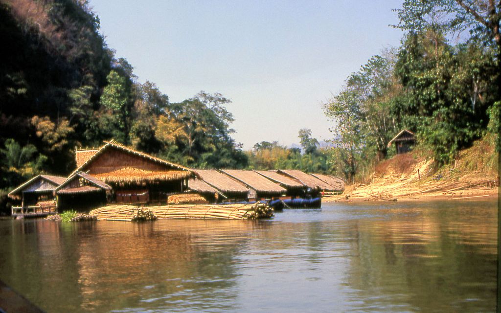 A scene of peace on what was once the site of unimaginable pain, Hellfire Pass on the River Kwai in Thailand. In this area live the people of the Mons, a distinct Thai tribe. One of these thatched houses is a schoolroom, one a restaurant and one a ‘hotel/restauarant’ (cold water shower with water from the river).