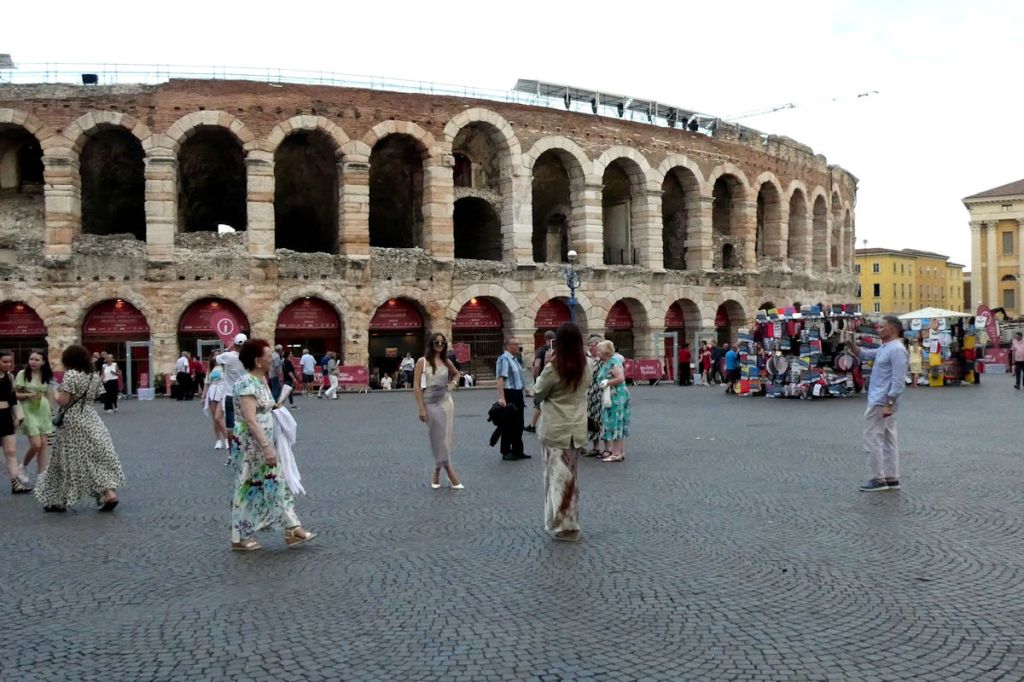 We came, we saw and we were conquered. Not just by the city but by the by-product of that city, opera, for we were in Verona for the 100th Anniversary of the performance held in the ancient arena, an arena older than the Colosseum in Rome. In ancient times it held 30,000 people for its circuses and gladiatorial events but as the stage for opera performances decreases the available seating, it now has places for only 22,000.