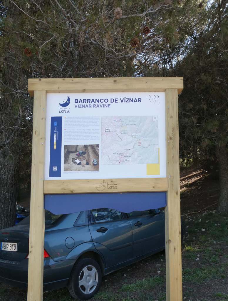 The burial area is accessed over uneven terrain and a paved dirt path has been laid by the City Council of Víznar that after a detour, leads to the main grave which is surrounded by a stone gallery filled with small metal plaques bearing the names and circumstances of those killed, placed there by Historical Memory Associations and the heirs of those shot.